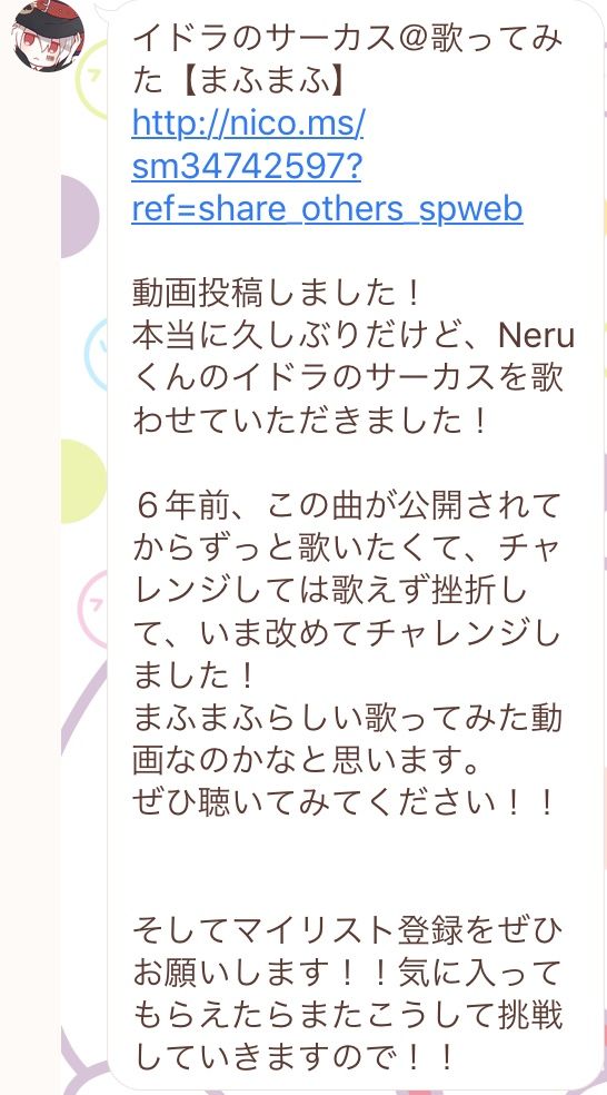 Neru氏の「イドラのサーカス」の歌ってみたが投稿されました。まふまふ氏が歌っていなかったNeru氏の投稿楽曲だったのでついに来たという感じです。
