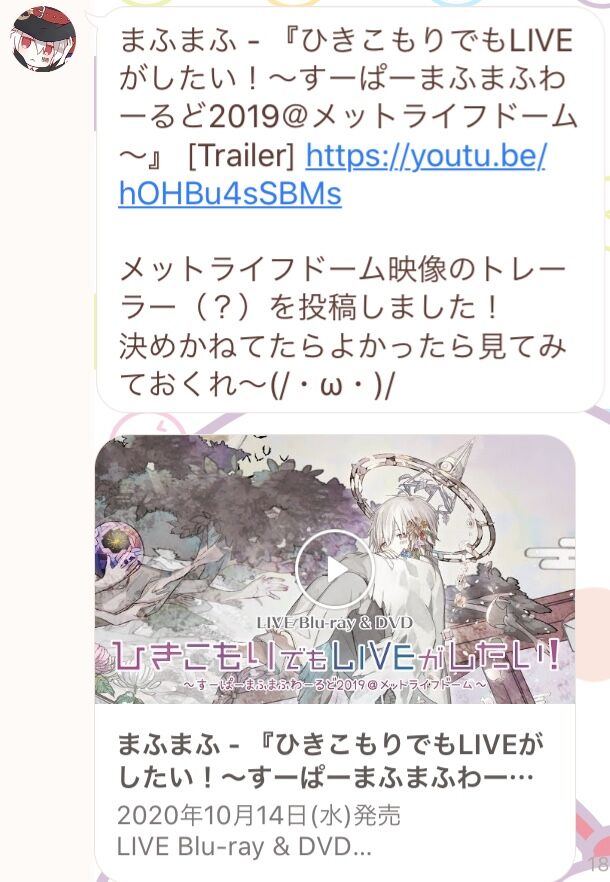 10月14日に発売される、「ひきこもりでもLIVEがしたい!〜すーぱーまふまふわーるど2019@メットライフドーム〜」のライブ映像集のトレイラーが投稿されました!