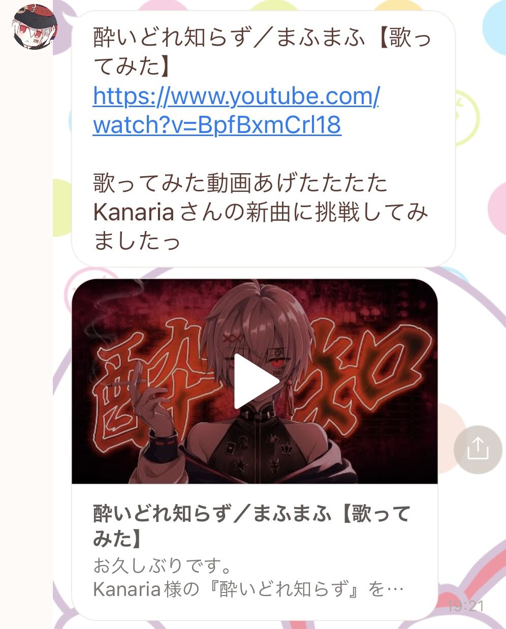 まふまふさんの公式LINEのメッセージ